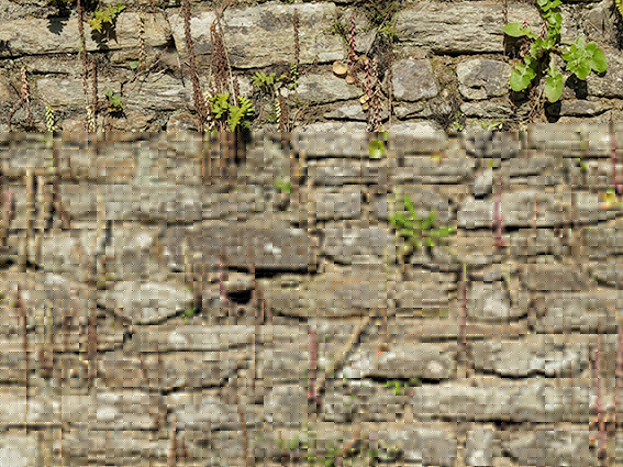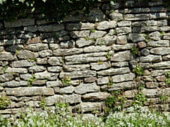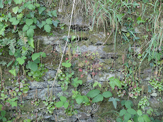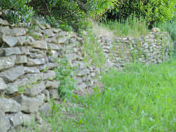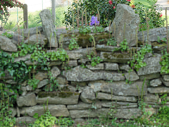chemin louvoie un antique muret dont les ondulations indique une vie foisonnante. En s’approchant on voit nettement les interstices entre les pierres qui sont autant d’entrées vers le monde souterrain.