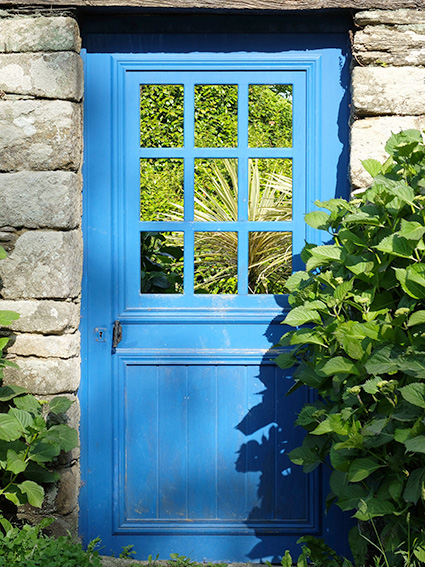 Symbole malicieux du quartier, une porte pimpante invite à un jardin aux bosquets exubérants, mais il semble bien qu’un lutin facétieux, à l’instar du roi Grallon, en garde la clé suspendue au cou par une chaîne d’or. Peut-être imagine t’il ainsi appâter une nouvelle Ahès.