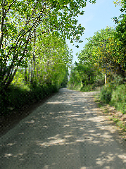 Profitant de travaux la construction d’un rond-point, je me suis donc engagé sur la rue-neuve, interdite de ce fait aux voitures, qui descend de Kroas-avalou à Forst et propose une balade dans le murmure du ruisseau qui coule en contrebas, le gazouillis des oiseaux et la majesté des futaies. Peu enclin à retrouver le bourg et sa civilisation je suis revenu sur mes pas, abandonnant la voie moderne pour Hent-poull-stang.