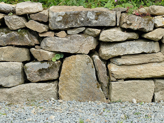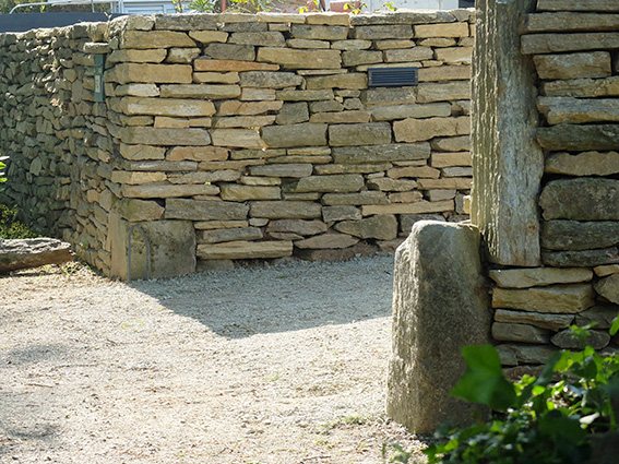 Suivre la route, et découvrir qu’ici les hommes aménagent leurs entrées de propriété avec des pierres qui cohabitent harmonieusement avec les vieilles pierres.