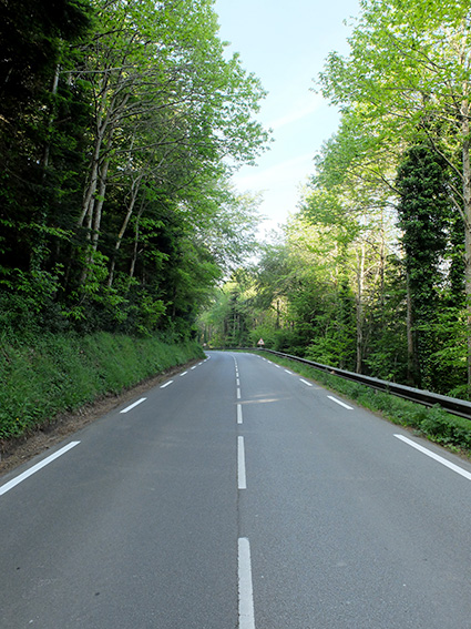 En quelques pas, ce n’est plus le même monde, la route monte rudement et partout dans le feuillage de petits yeux vous épient. À la première pente un vieux muret se laisse deviner sous le fatras des herbes,