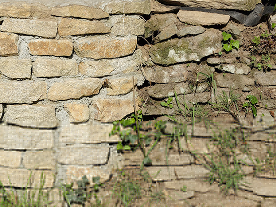 Au bout de la route (tout a une fin), fuyant les pelleteuses et la poussière des travaux, je suis rentré chez moi en regardant d’un œil neuf le petit muret qui sépare mon jardin de celui du voisin. Il est assez ancien, mais a été rénové il y a peu. J’ai pu remarquer une pierre qui a