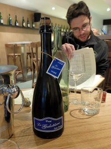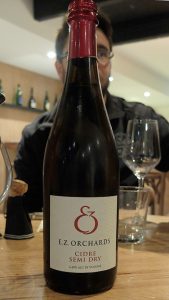 Une tout autre origine pour le dernier cidre de la soirée avec l’EZ Orchards qui nous vient de l’Orégon aux USA et m’avait été transmis par Darlene Hayes, éminente spécialiste Américaine du cidre. En bon Cornouaillais, nous avons un peu “galéré” avec la capsule (c’est assez courant aux USA), mais heureusement Ronan Gire a dégainé l’outil adéquat.