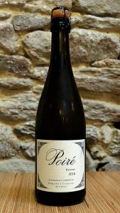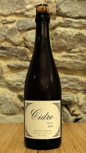 Nous avons en premier une bouteille de Folletière 2014. Belle présentation de la bouteille avec assez de sobriété et d’informations pour attirer l’œil. On regrettera cependant que diverses informations légales soient peu lisibles. Quoi qu’il en soit, ce cidre montre une belle couleur orangée, très légèrement voilée avec un bel effet de mousse au service. Le nez, expressif, respire la pomme très douce et sucrée. En bouche la douceur est là avec un peu d’acidité, du corps et une petite touche d’astringence. La finale est longue avec du fruit. C’est un petit peu sucré, mais bien fait et élégant.