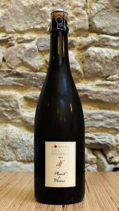 La premier flacon proposé par Ronan était un Poiré 2011, le Plant de blanc. Une belle et sobre présentation de la bouteille sans précision technique, mais avec des indications claires et concises. Dans le verre, ce poiré est limpide et brillant, jaune paille, mais quelques légers “pompouch” (petits voltigeurs) vagabondent de-ci de-là, sans excès cependant (il semble que ce soit fréquent avec le poiré). Le nez est initialement presque absent et il faut attendre un peu pour sentir le fruit. En bouche il y a un très bel équilibre sucre-amertume-acidité rehaussé par un peu de fruit et une agréable pétillance. La finale est dans cette continuité. Au total c’est un poiré plaisant, fin et très agréable.