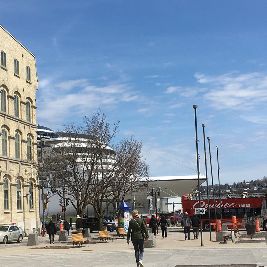Ce fut un beau séjour, comme toujours un peu bref, pendant lequel nous avons vanté et parfois dégusté de l’AOP Cornouaille avec des Bretons  croisés dans des crêperies à Montréal2 ou à Québec3. Nous avons eu quelques inquiétudes car les grèves (d’avions et de trains) dans l’Hexagone contrariaient notre retour. Finalement tout c’est plus ou moins bien passé, mais flânant sur le port de Québec au matin du départ, nous nous sommes dit qu’en bateau: “c’est pas si pire”.