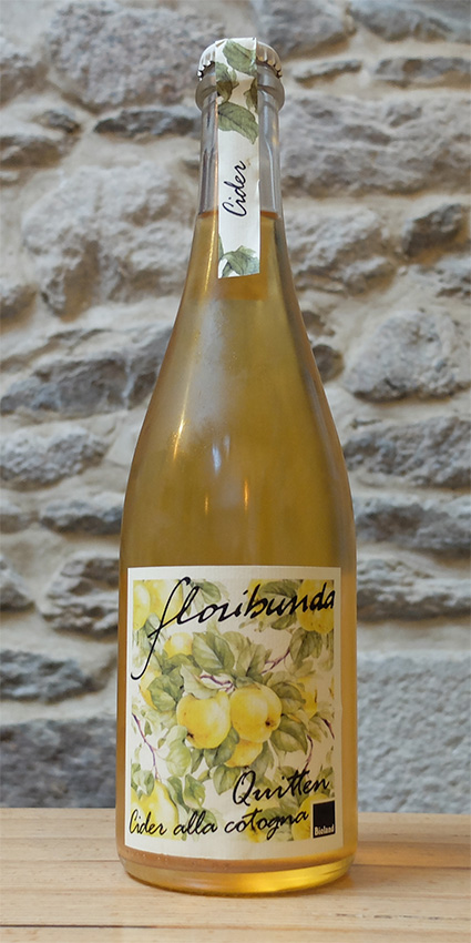 La Maison Floribunda (du nom des rosiers obtenus  par croisement d’hybrides de Thé et des Rosiers Polyantha), s’affiche avec l’étiquetage bilingue Italien-Allemand, commun au Sud Tyrol. Producteur de pommes bio dès les années 1980, elle produit du cidre depuis le début des années 2000. Le Quitten est un cidre au coing au beau service, bel effet de mousse, robe pâle et jolies petites bulles. Le nez est très aromatique avec de la fleur et du fruit et de petites notes fumées. La bouche est douce et acidulée et douce, mais manque un peu de la puissance aromatique annoncée par le nez. La fin de bouche est assez courte. L’ensemble est agréable, mais cela gagnerait à être plus structuré car le nez est vraiment superbe.