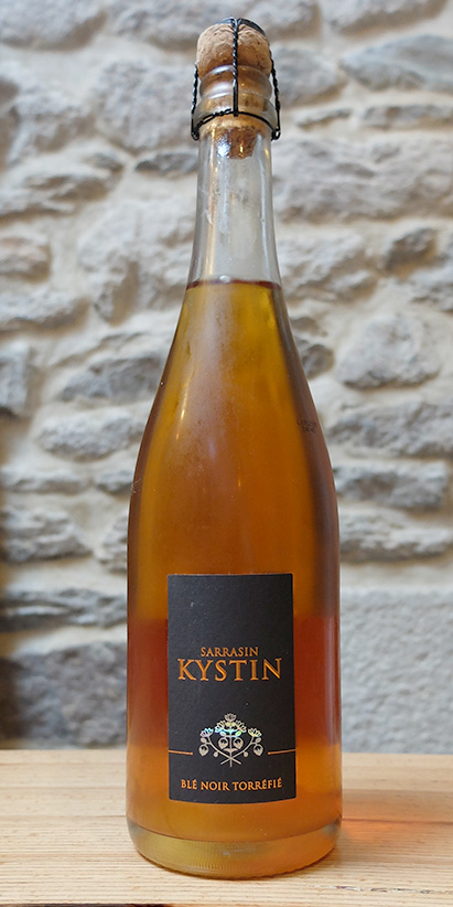 Un cidre macéré au blé noir torréfié, qui doit être une première tout en s’inscrivant dans les expérimentations de la Maison Kystin. Au service l’effervescence assez timide laisse découvrir une robe orange et limpide. Le nez est au contraire expressif avec des senteurs pralinées de fruits secs torréfiés, de notes de chocolat et de tabac. La bouche est douce et un peu lourde avec une présence pralinée un peu déroutante qui laisse au final un sillage court. Si l’expérience est intéressante, elle gagnerait sans doute laisser plus de place à la pomme.