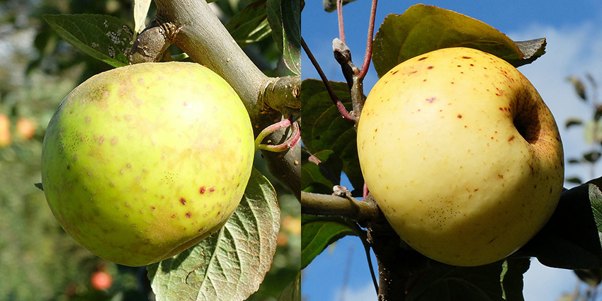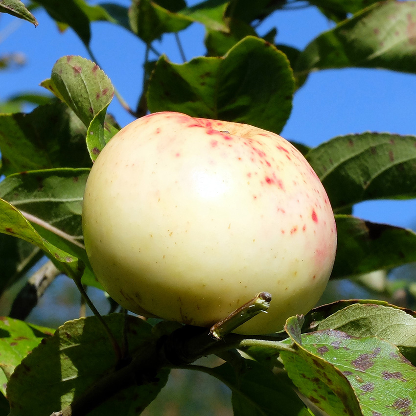 Ce n’est cas un cas isolé, les pommes, à cidre ou à croquer, voyagent et bien souvent leur nom change, surtout si les langues d’usage des paysans-cidriers diffèrent. La C’hwerv-gwenn l’illustre bien et nous offre en prime de consulter d’anciennes descriptions montrant un fruit finalement assez stable dans le temps (au gré des variantes, clones et mutations cependant). Très présente dans tout le Sud-Cornouaille, son origine est inconnue, mais il est acquis qu’il s’agit d’une variante de la Blanc-Mollet, une variété à cidre très courante sur de nombreux terroirs cidricoles de l’Hexagone depuis plusieurs siècles. Bien que réputée d’origine inconnue, son nom Blanc-Mollet est peut-être en rapport avec Claude Mollet (1557/1647), éminent architecte-jardinier et auteur du Théâtre des plans et jardinages, ouvrage précurseur de l’aménagement du jardin d’agrément.