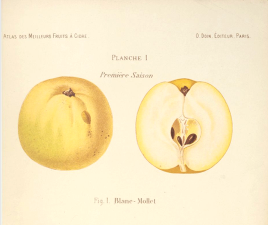 À noter également que la Bibliothèque des Champs Libres à Rennes conserve les Archives des Vergers expérimentaux de l’École d’Agriculture des Troix-Croix de Rennes, dont une planche datant de la période 1882-1910, représente un Blanc-Mollet.