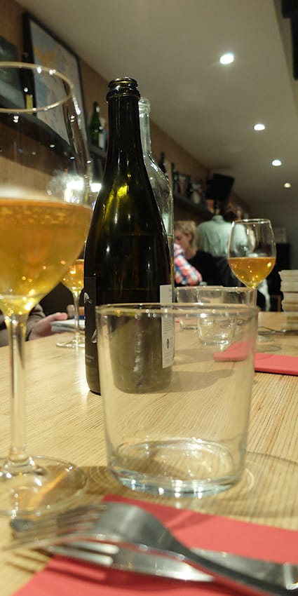 Il s’avère compliqué d’organiser des dégustations pendant la saison des récoltes. Ce fut donc une petite session dans la bonne humeur et l’accueil toujours chaleureux de l’équipe du Sistrot. Il s’agissait pour l’occasion de tester des bouteilles venues du Portugal et un mystérieux essai déposé en toute discrétion par un des grands noms de la carte du Sistrot, dont il est notable de constater qu’elle s’agrandit d’année en année. Erwan Gire saura faire retour de ses impressions au producteur. Pour clore la séance, nous avions un cidre basque rapporté d’une pérégrination estivale en Pyrénées occidentales.