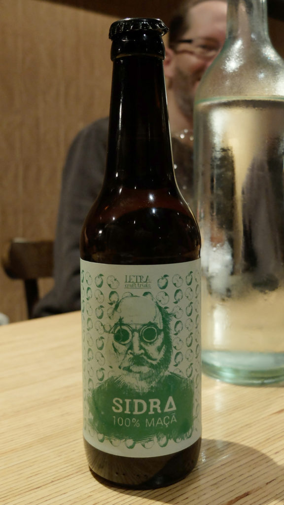 La brasserie artisanale Musa, connue à Lisbonne pour ses nombreuses collaborations, nous sert ici un cidre élaboré en …France. Il a la couleur et la pétillance d’un cidre français. Pour le reste le nez de pommes cuites laisse penser à une production pasteurisée, impression confirmée par une bouche sucrée acidulées dont l’effervescence ne semble guère naturelle.