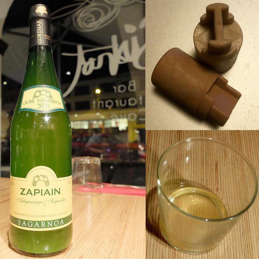 C’est évidemment un cidre au nez acétique avec pierre à fusil et traces de pamplemousse. En bouche, c’est sec, acidulé et acétique dans la plus pure tradition basque. Évidemment ces cidres s’apprécient à table, avec l’omelette à la morue, la pièce de bœuf et les soupes, une gastronomie qui se révèle dans les chaleureux (et parfois interminables) repas au cœur des cidreries.