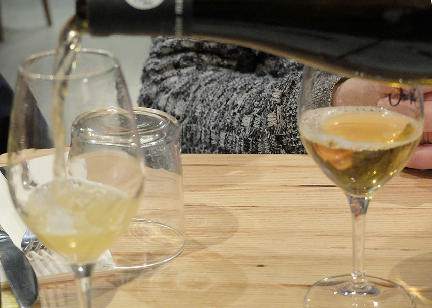 Sans autre signe distinctif que le nom commun des canidés Vulpes vulpes, un goupil facétieux, Normand semble t’il, a laissé cette bouteille au Sistrot. Une ruse qui lui permettra de se reconnaître. Le service est superbe, du moins pour les premiers verres car là encore ce n’est pas filtré, avec un bel effet de mousse et une jolie couleur dorée. Au nez, sur une pomme une peu évoluée, une senteur de poivre monte immédiatement. Et cela se confirme en bouche, le poivre titille les papilles. L’ensemble est bien équilibré avec de la fraîcheur, du fruit et de la longueur poivrée. Du fond de son terrier, le renard a bien travaillé, dommage qu’il s’y cache.