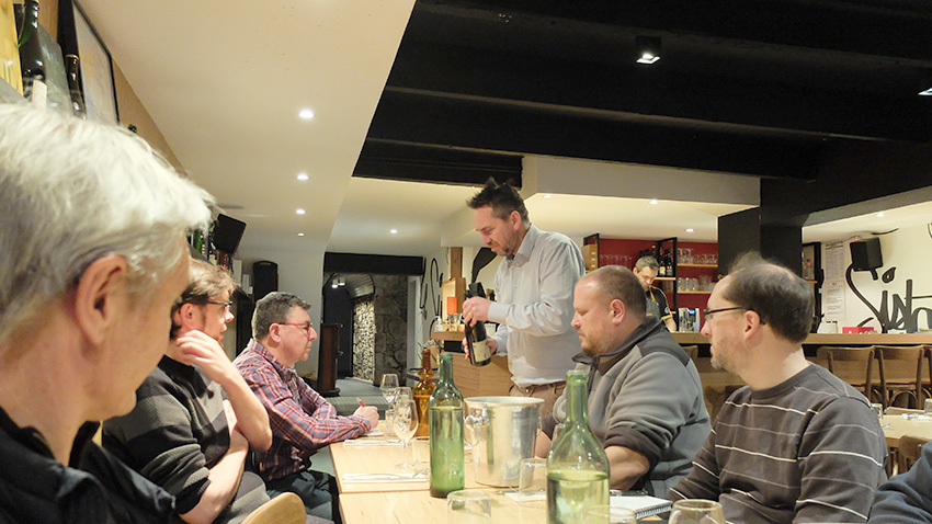 Joli service et belle présentation habillant le verre de courtes larmes. Le nez est assez discret, mais au bout d’un court moment vient une minéralité fumée avec de douces notes de pommes. La bouche est bien équilibrée avec de l’acidité initiale laissant doucement monter l’amertume. Il y a juste ce qu’il faut de corps, de la longueur et l’expression d’un très beau travail. On regrettera, sans aucune véhémence, qu’il ne soit pas un tout petit peu plus charnu. Casus belli signifie littéralement “cas de guerre” et désigne normalement un acte de nature à motiver une déclaration de guerre. Loin de tout cela ici et ce cidre tranquille n’a causé aucun désaccord dans l’assemblée.